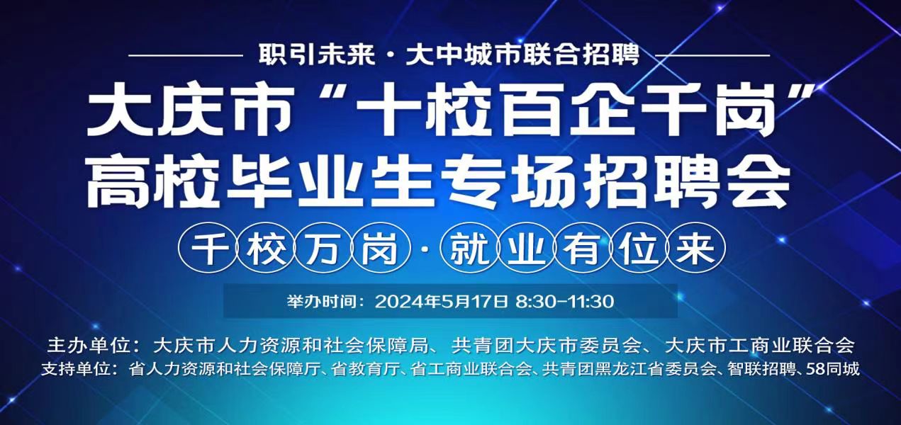 2024年5月17日上午8:30分---11:30分,大慶市人力資源和社會保障局舉辦了“十校百企千崗”高校畢業生專場招聘會。