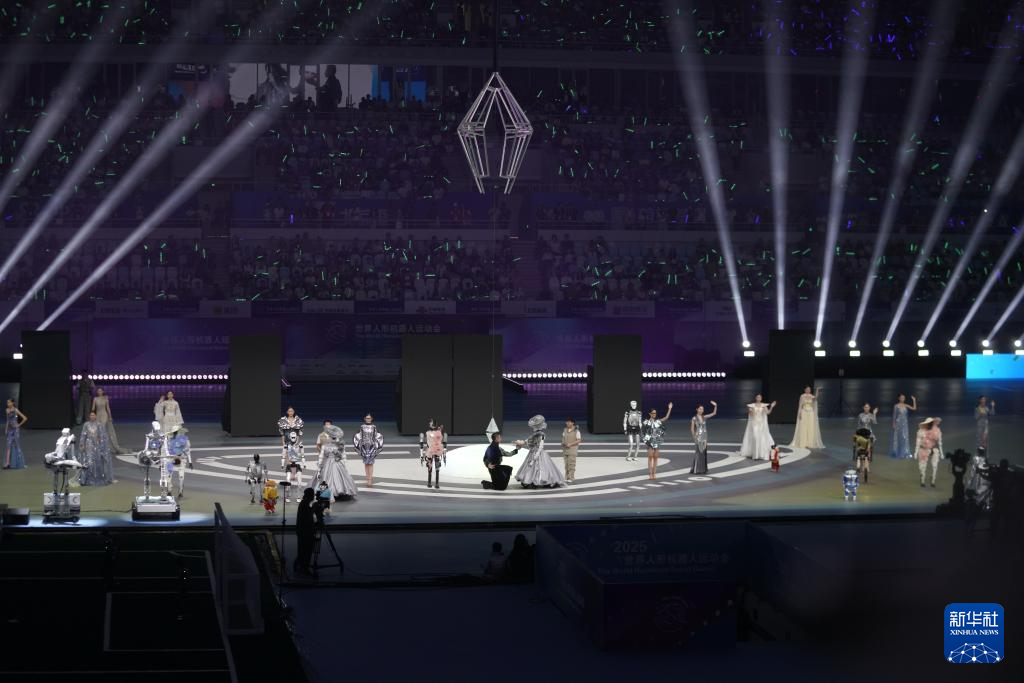 ??歌舞節(jié)目《歡迎來到碳基生命的世界》中,人類舞者與機(jī)器人以流暢協(xié)作演繹“碳基與硅基的對(duì)話”;服飾走秀節(jié)目《天工霓裳》則將非遺技藝與未來設(shè)計(jì)完美融合……14日的開幕式上,超百支戰(zhàn)隊(duì)閃耀“冰絲帶”,各式機(jī)甲競(jìng)展風(fēng)采,機(jī)器人街舞、戲曲輪番登場(chǎng),更與專業(yè)街舞團(tuán)聯(lián)袂獻(xiàn)藝,生動(dòng)演繹科技與人類文明的碰撞交融。隨著舞臺(tái)中央的“智芯”裝置——鑲嵌藍(lán)色晶體芯片的金屬四棱錐被點(diǎn)亮,2025世界人形機(jī)器人運(yùn)動(dòng)會(huì)正式啟動(dòng)。