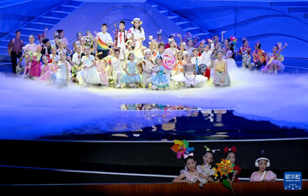 主題演出以“我和祖國一起成長”為主題,分為“生而向陽”“燦爛時光”“一路綻放”“春風雨露”“同心圓夢”五個篇章。演出序幕拉開,在璀璨的舞臺上,孩子們身著五彩斑斕的民族服飾,手牽手快樂地起舞,共同編織出一幅絢麗多彩的民族團結畫卷。音樂舞蹈劇《追夢·傳承》以展現時代的變遷,激勵廣大青少年銘記歷史、發奮圖強、建設祖國;情景節目《融畫小精靈》將華陰老腔、皮影戲、兒童舞蹈等藝術元素跨界融合,展現出中華優秀傳統文化的獨特魅力;情景秀《目望蒼穹》將香港青少年的武術表演與內地青少年的流行舞蹈相結合,贏得觀眾陣陣掌聲……主題演出通過音樂情景劇、民族歌舞、多媒體戲劇表演、國風時裝秀、京劇新編等豐富多彩的藝術形式,講述了新時代青少年兒童與祖國一起成長的故事。